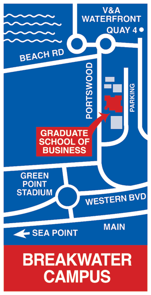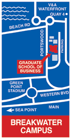 Breakwater Campus This campus houses UCT's Graduate School of Business and is located near to the popular Cape Town attraction, the Victoria and Alfred Waterfront. |
