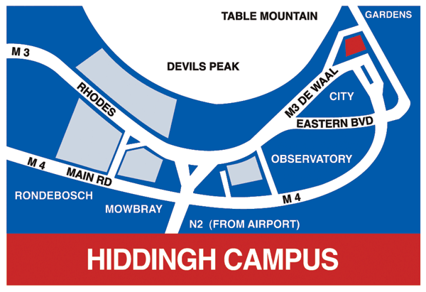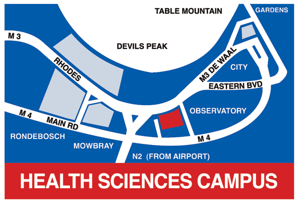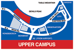 For further information, consult Directions to UCT and Campus maps in the menu.