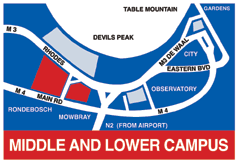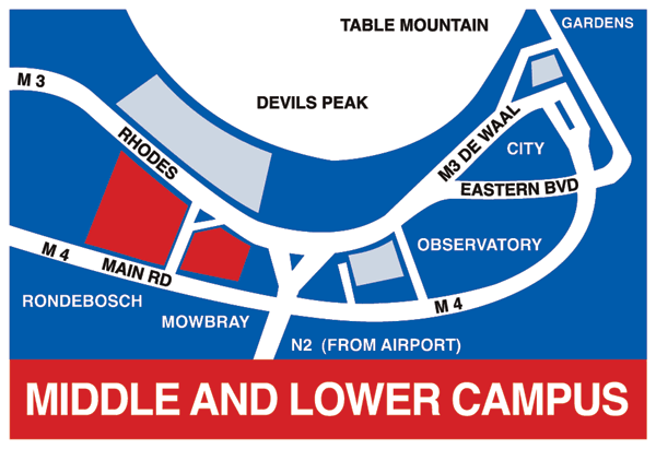 Middle and Lower Campus This campus houses UCT's Law Faculty, administrative buildings and many of UCT's main student residences. |